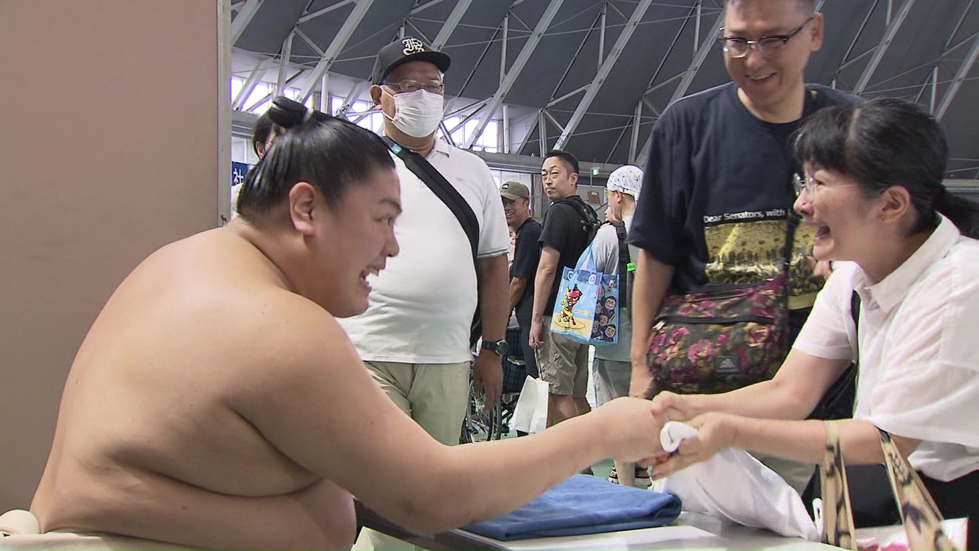 ファンを出迎えたのは、北海道唯一の関取、岩内町出身の一山本です。