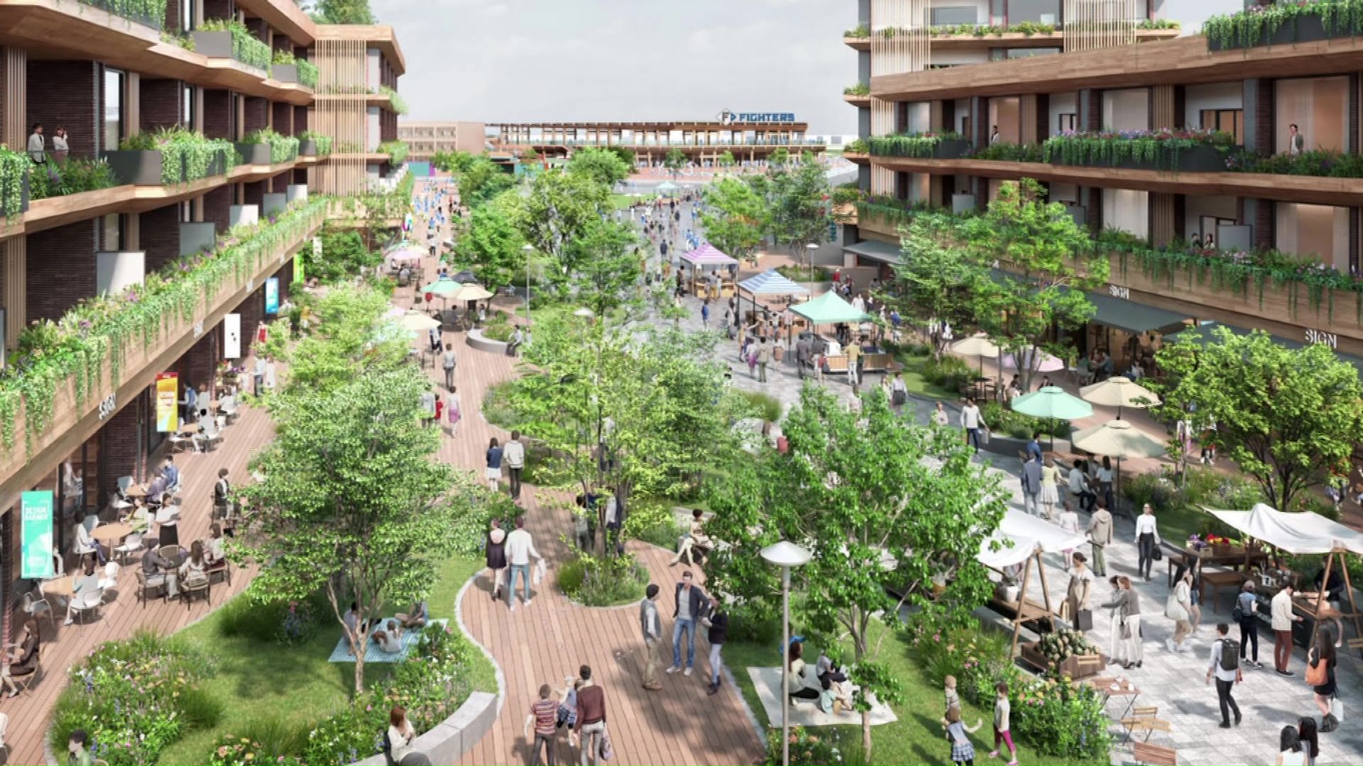 ファイターズの2軍本拠地は、2030年までに5000人収容の屋外スタジアムを中心に商業・住宅地の開発も進めるものです。