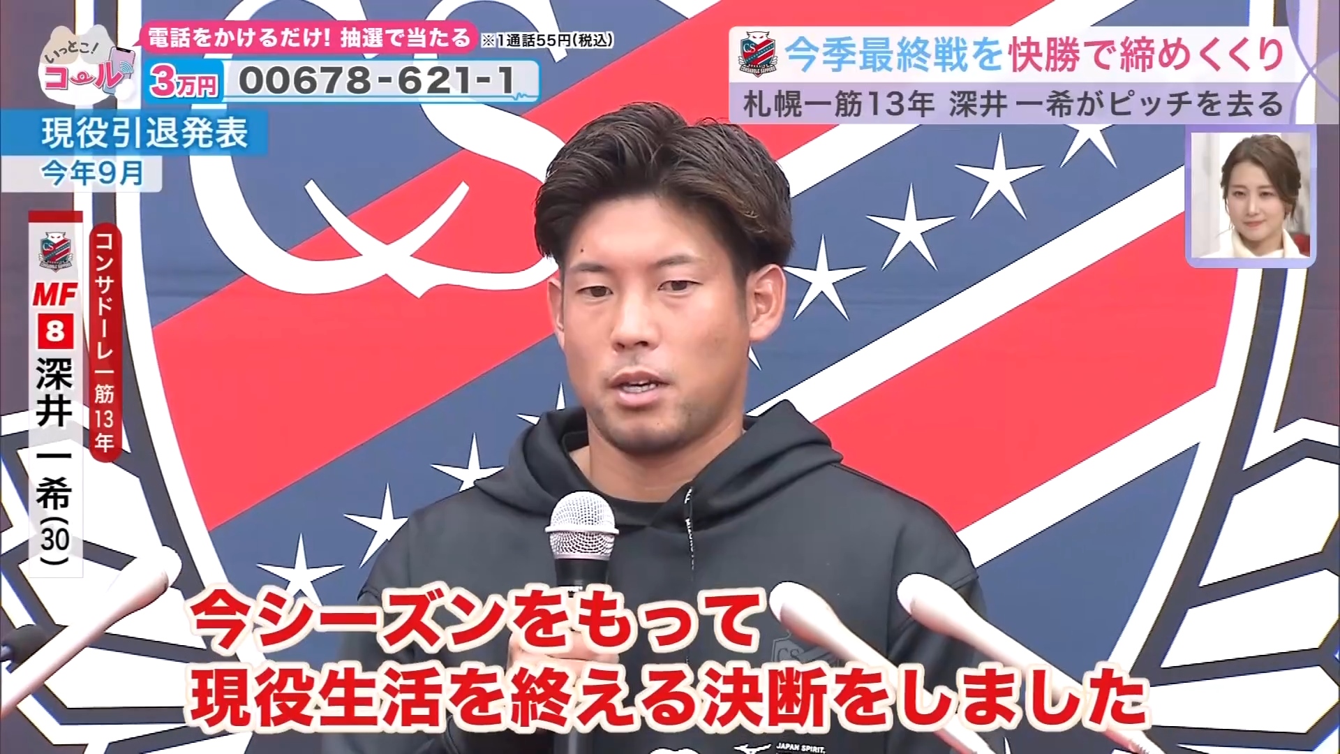 本当にたくさんの方に勇気と希望を与えてくれる存在でした。小学4年生から22年間コンサドーレでプレーしてきた深井選手ですけれど、これからもコンサドーレに残って子供たちを教えていくという事です。深井選手、本当に現役生活お疲れ様でした。これからの深井選手も心から応援しています。
